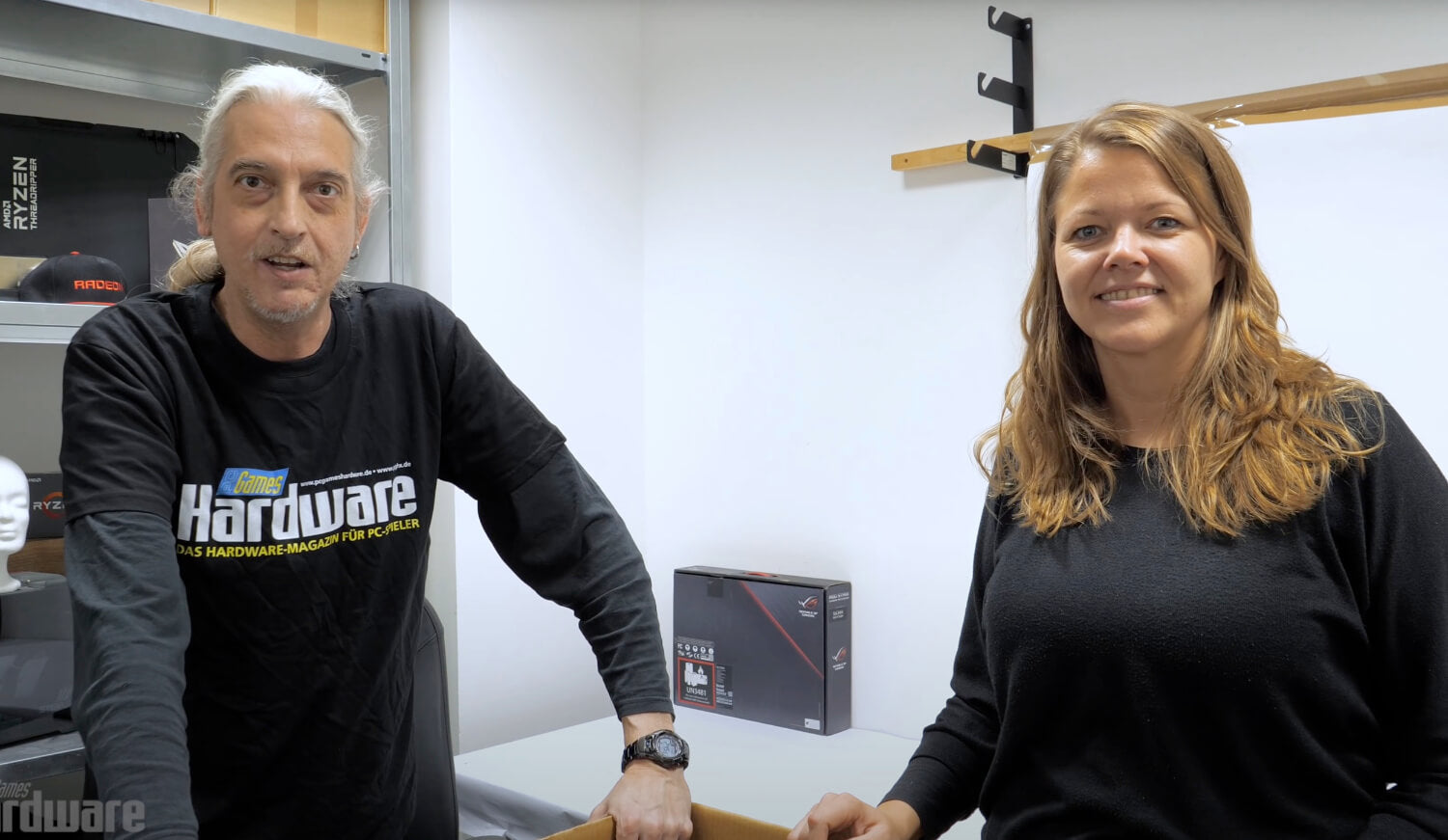 Frank Stöwer, Redakteur der PCGH und GAMECHANGER Gründerin Janet Carstensen stellen gemeinsam den ergonomischen GAMECHANGER Gaming Stuhl vor.