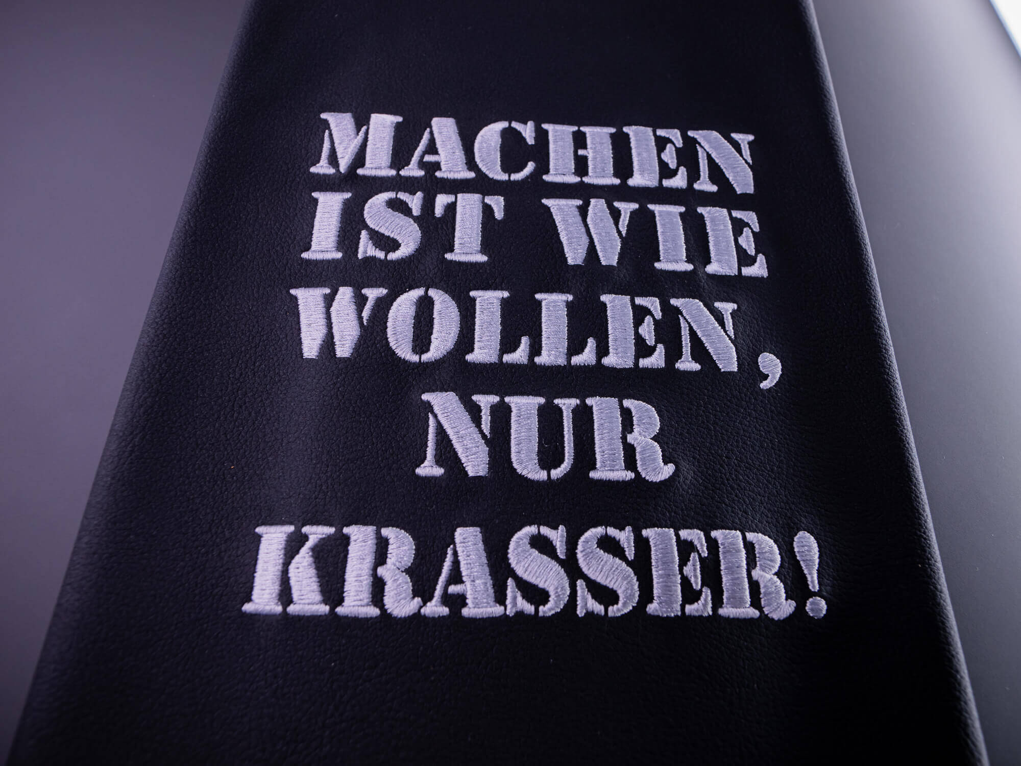 Das ist schnell erklärt, wir wollen das du nicht schwitzt. Genau das ermöglicht das von uns eingesetzte und in Deutschland produzierte atmungsaktive Kunstleder. Dieses gibt es allerdings nur in wenigen Farben.